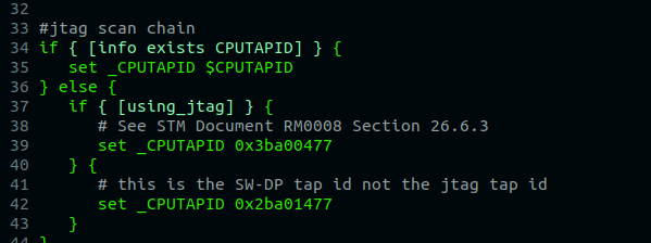 Now, open the file and replace the idcode 0x2ba01477 by 0x1ba01477 . I prefer open the file using Vim editor.